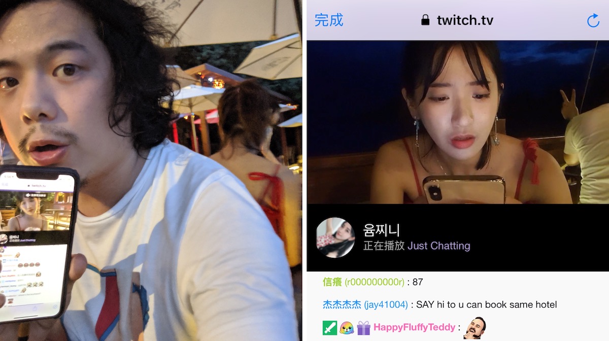 企鵝妹還直接坐在我隔壁桌(明明整排座位都沒人),直接開啟Twitch直播看自己的背影!?